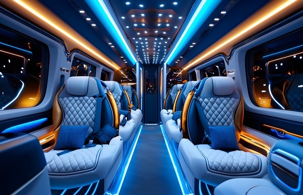 باصات VIP فاخرة على أعلى مستوى تتمتع الباصات بمواصفات السفر بالطائرة برفاهية مقصورة الدرجة الأولى؛ إذ تحتوي على 26 مقعداً منفرداً مصنوعاً من أفخم أنواع الجلود. كما يتضمن مميزات فندقية خاصة، كنظام التكييف 360 درجة الحديث، للتغلب على حر الصيف الشديد، وشاشات حديثة بنظام «CCTV»، وأنماط إضاءة «LED» خاصة. وتم تزويد هذه الباصات بخدمة الإنترنت اللاسلكي «WiFi» عالي السرعة، ومنافذ كهربائية حديثة بمداخل «USB» إضافية، إلى جانب الإضاءة الخاصة بالقراءة، والثلاجة، والطاولات القابلة للطي.